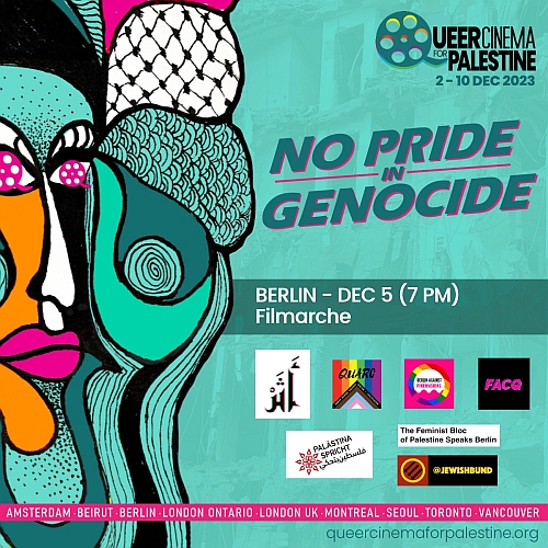 Diese Veranstaltung ist Teil von No Pride in Genocide, einer globalen Filmveranstaltung, die von queercinema4palestine organisiert wird. Vorführungen finden in Städten auf der ganzen Welt statt, darunter Berlin, London und Toronto.
