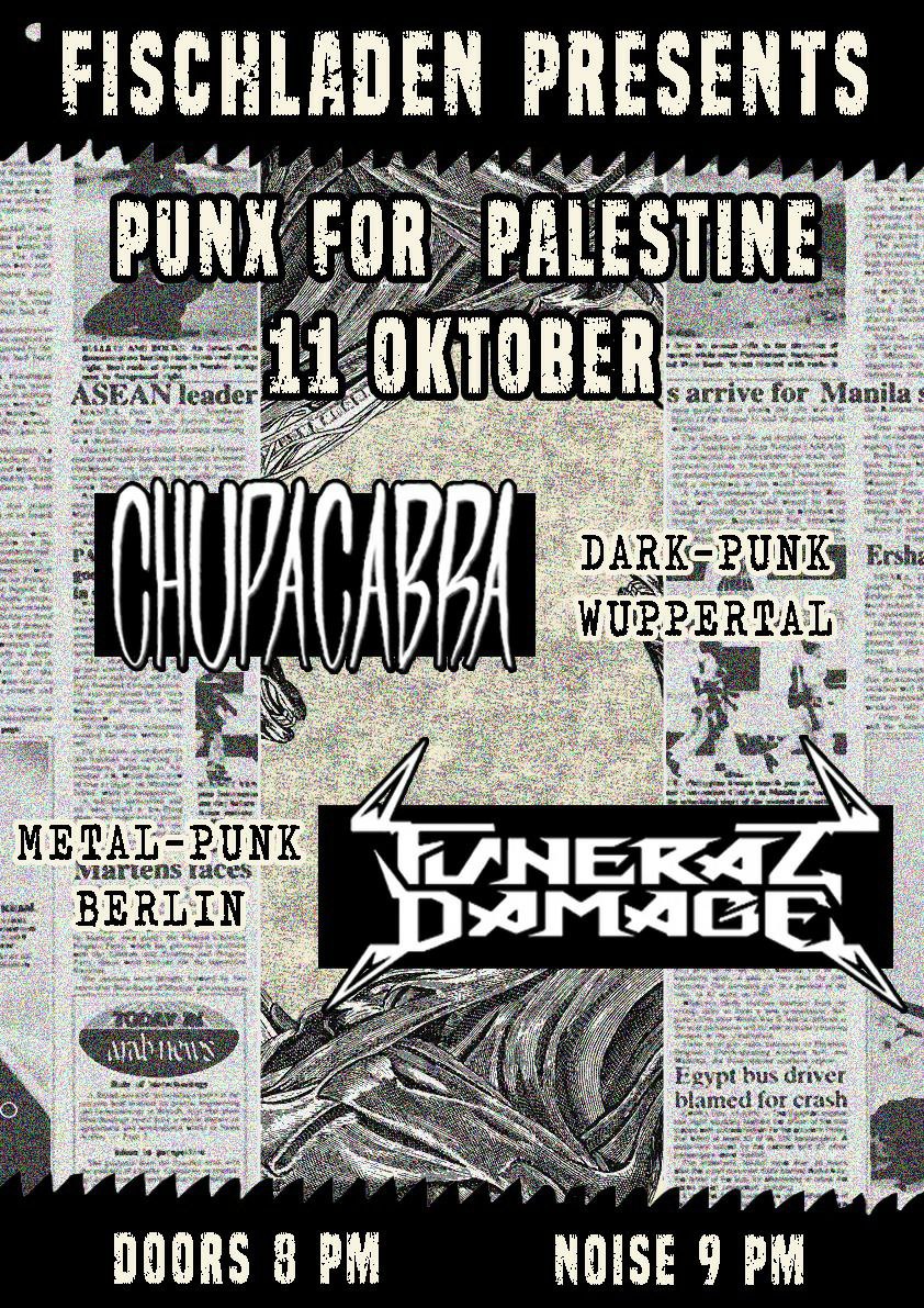 PUNX FOR PALESTINE Soli Konzert mit "Svarta Havet" (Dark Post Hardcore, FIN), "Chupacabra" (Dark-Punk, Wuppertal), "Funeral Damage" (Metal-Punk, Berlin)