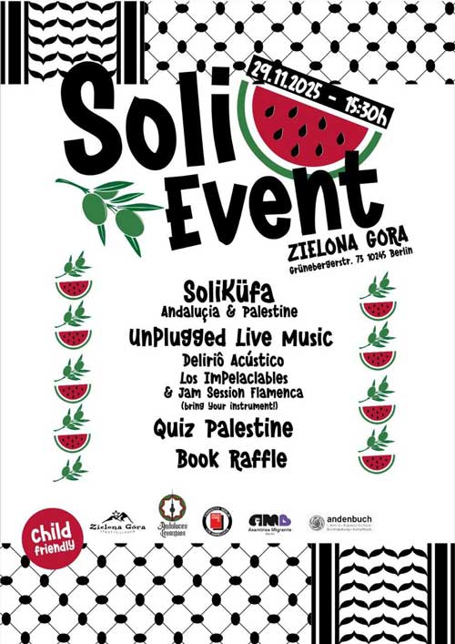 Various migrant collectives in Berlin are coming together to raise their voices and collect funds for humanitarian aid in Gaza. Since October 7th, the Palestinian people have been suffering a genocide in the face of governments inaction. We cannot remain silent. We say loud and clear: this is not a war, it’s a genocide!