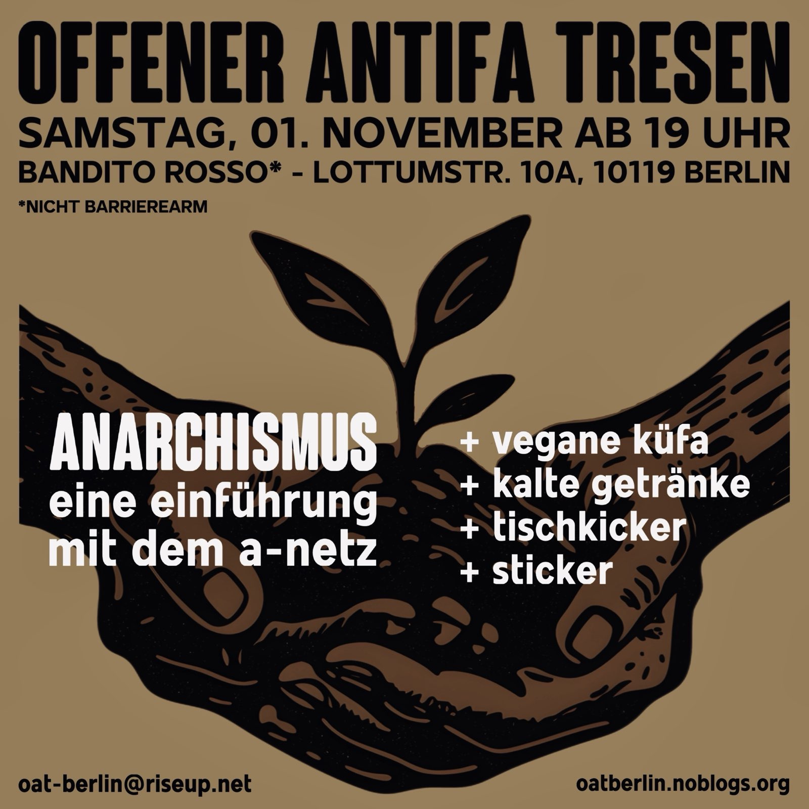 Um etwa 20 Uhr gibt es einen Vortrag zu Anarchismus mit den A-Netz.
