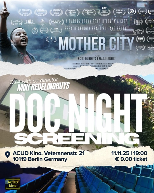 🎬 Mother City Documentary, a gripping South African documentary by Miki Redelinghuys & Pearlie Joubert that follows the “Reclaim the City” movement fighting for housing justice in Cape Town. A deeply human story about belonging, power, and resistance in one of the world’s most unequal cities