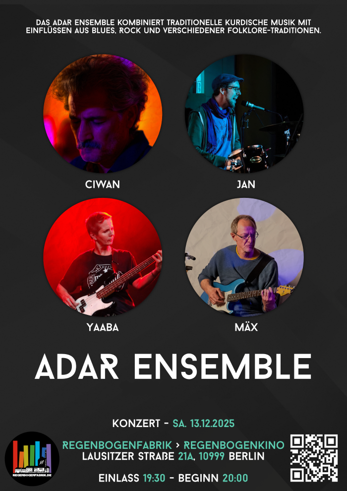 Das Adar Ensemble spielt sowohl traditionelle kurdische (und armenische) Lieder als auch viele eigene Kompositionen.