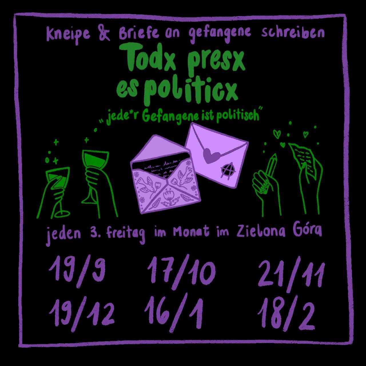 „Todx persx es politicx – jede*r Gefangene ist politisch.“ Jeden 3.Freitag im Monat.