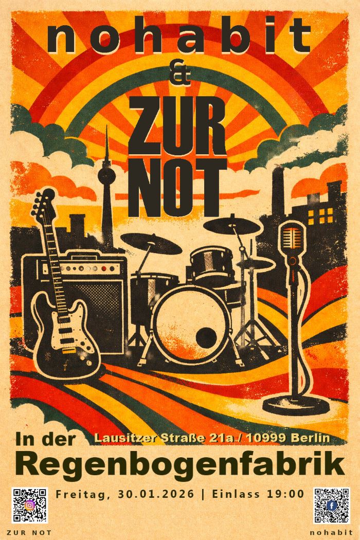 ZUR NOT sind vier Berliner Jungs, für deren energetische Klang-Kletten extra das Genre Discounterrock erfunden wurde.