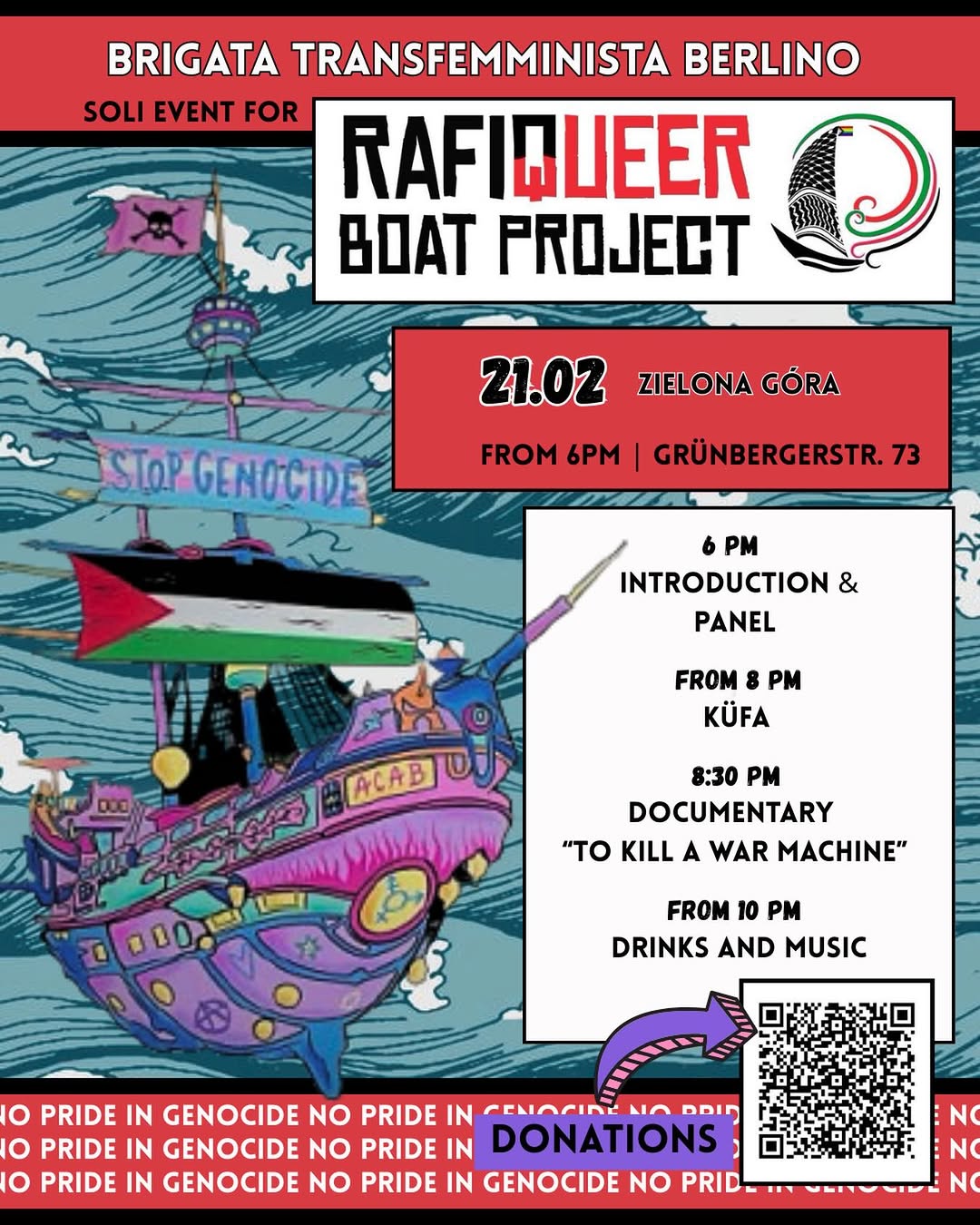 Join us to support the comrades of RafiQueer and contribute to the mission to Gaza, uniting transfeminist struggles with the resistance of people in Palestine. // In spring, the coalition Thousand Madleens - Global Flotilla- will set sail with a new fleet to Gaza.