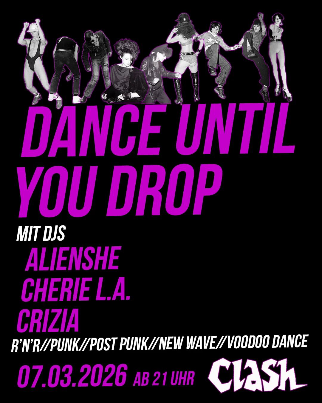 Dance Until You Drop WOMEN'S DAY SPECIAL Dj-set night with DJs Alienshe Cherie L.A. Crizia R'n'R//Punk//Post Punk//New Wave//Voodoo Dance From 21:00 Fee: 5€